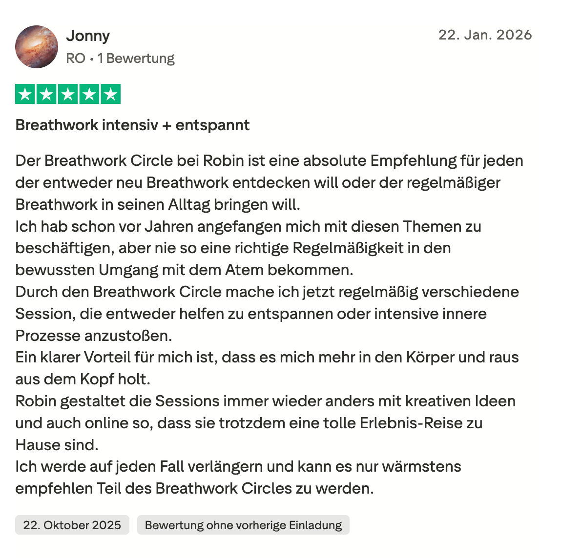 ● 1 transformative Breathwork /Monat, die dich hilft dabei alte Schutzmechanismen loszulassen und toxische Emotionen loszulassen